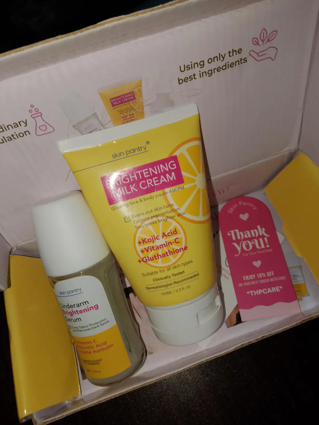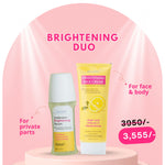 To make sure that these two areas stay clean and well cared for, we present you with our Brightening Duo. This bundle combines our Brightening Milk Cream, your go-to solution for face and body, with our Underarm Brightening Serum, specially designed for private parts.