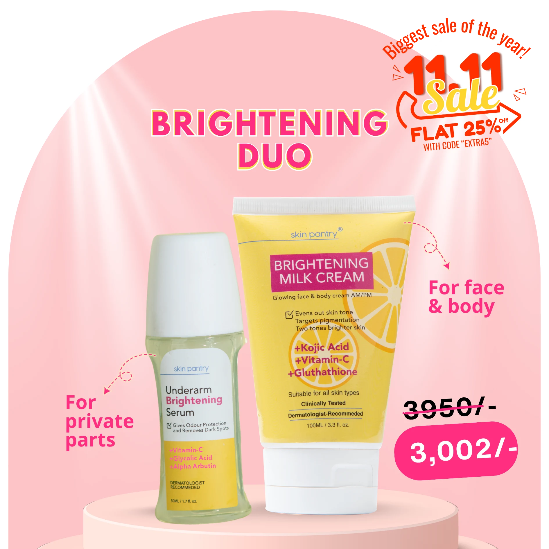 A: It brightens dull skin by two tones, reduces hyperpigmentation, neutralizes redness, and improves overall skin clarity.
